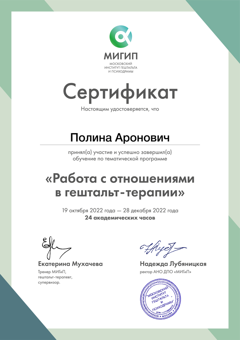 - Правила переноса и оплаты пропущенной сессии мы согласуем в начале работы — так, чтобы это было ясно и спокойно для обеих сторон.